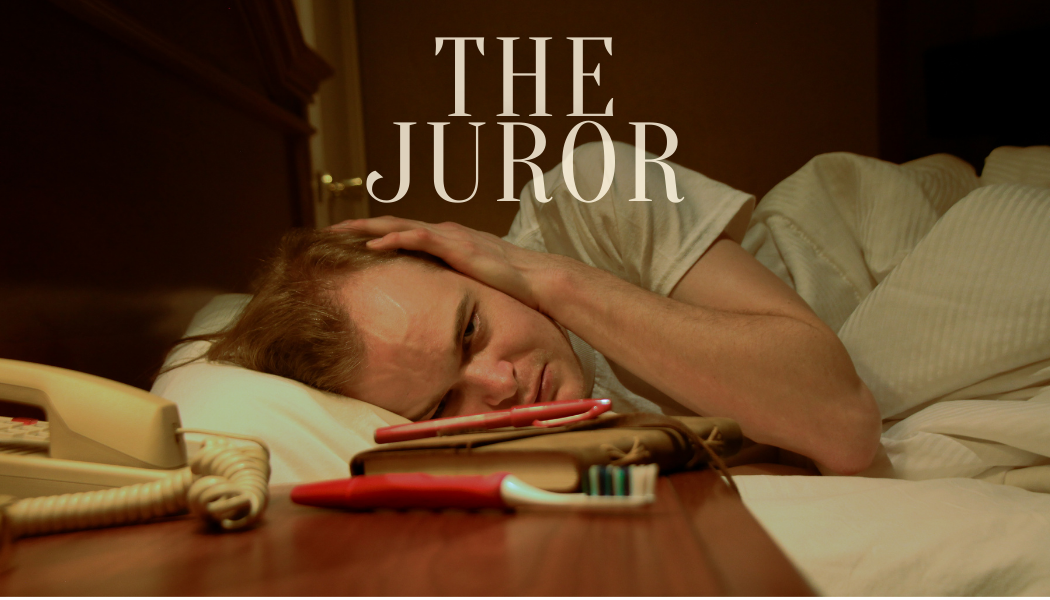 SIGMUND (29) a mentally troubled man with severe social anxiety, gets called for jury duty for a high profile murder case. He is glad to accept believing this will save him from his mundane life, and that being sequestered in a small hotel with no connection to the outside world, will give him the life experience he has been lacking. Sigmund believes he’s found his purpose being a juror. For the duration of the trial Sigmund will be living next door to JUROR THREE (58), a devoted christian who sings day and night, making it impossible for Sigmund to sleep. Sigmund finds comfort in the late hours of the night, roaming alone around the empty hotel.